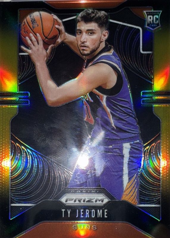 This card is 1 of 83 Ty Jerome's card variations in the 2019 Prizm set being tracked by Sports Card Investor, including Base, Choice Blue Yellow Green, Fanatics Green Ice, Fast Break, and FOTL Blue Shimmer.