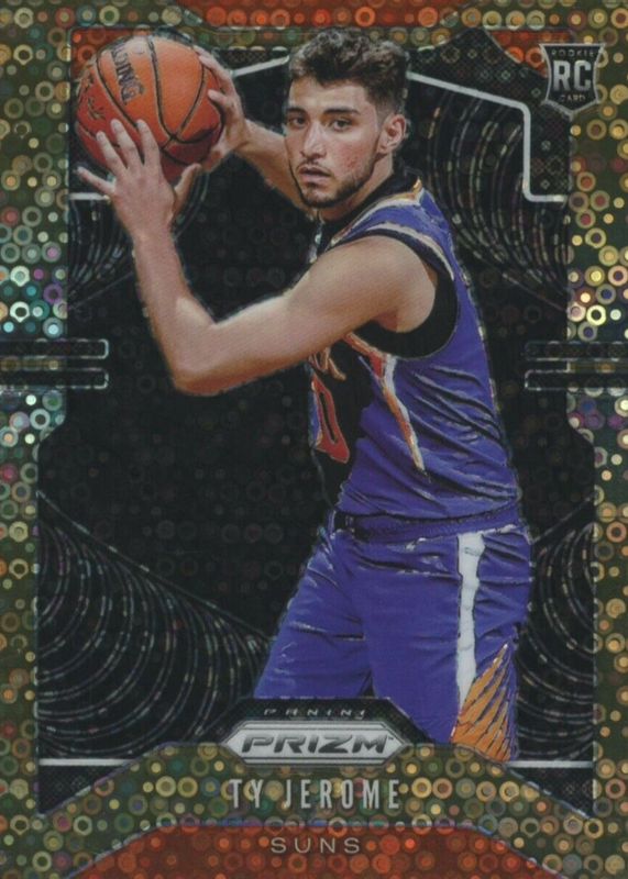 This card is 1 of 83 Ty Jerome's card variations in the 2019 Prizm set being tracked by Sports Card Investor, including Base, Choice Blue Yellow Green, Fanatics Green Ice, Fast Break, and FOTL Blue Shimmer.