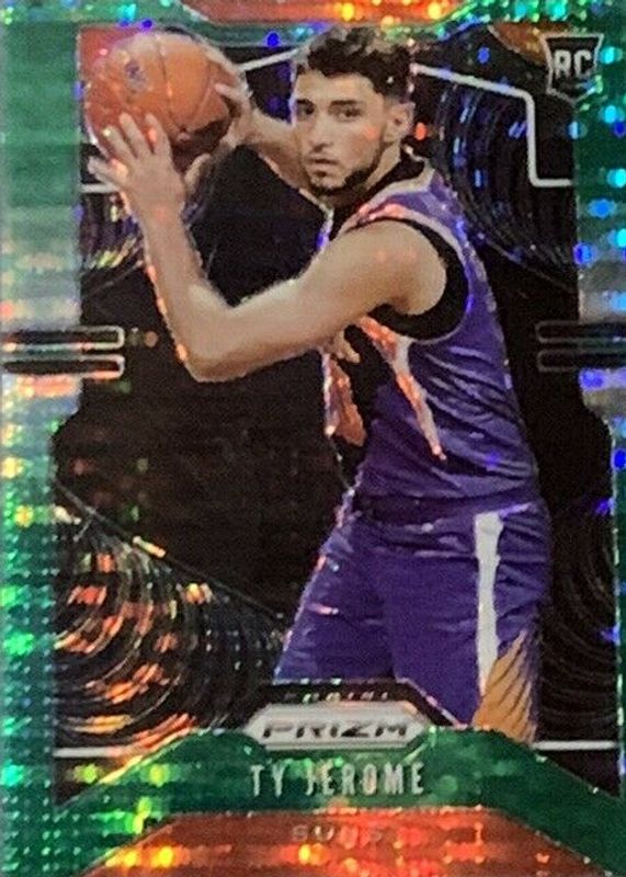 This card is 1 of 45 Ty Jerome's card variations in the 2019 Prizm set being tracked by Sports Card Investor, including Base, Choice Blue Yellow Green, Fanatics Green Ice, Fast Break, and FOTL Blue Shimmer.