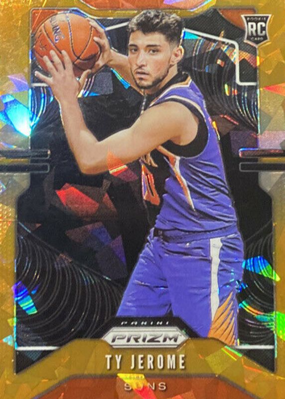 This card is 1 of 83 Ty Jerome's card variations in the 2019 Prizm set being tracked by Sports Card Investor, including Base, Choice Blue Yellow Green, Fanatics Green Ice, Fast Break, and FOTL Blue Shimmer.