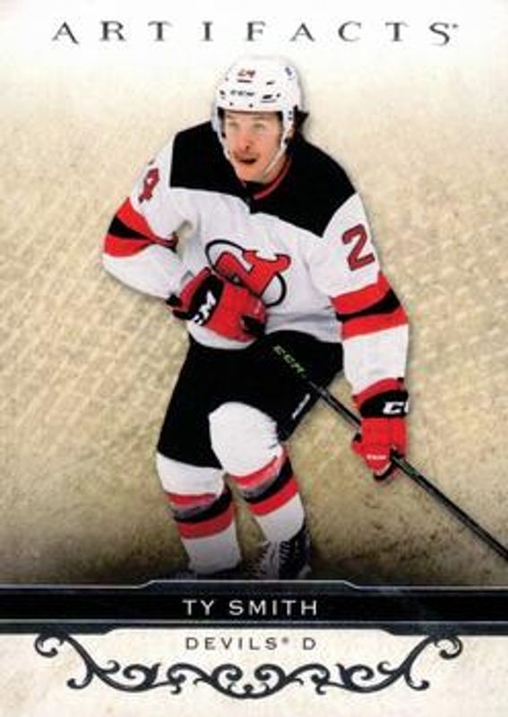 The Ty Smith 2021 Upper Deck Artifacts #61 Base /999 card is 1 of 28 Ty Smith's card variations in the 2021 Upper Deck Artifacts set being tracked by Sports Card Investor, including Neon Green, Rose Gold, Turquoise, Ruby /499, and Silver Spectrum /299.