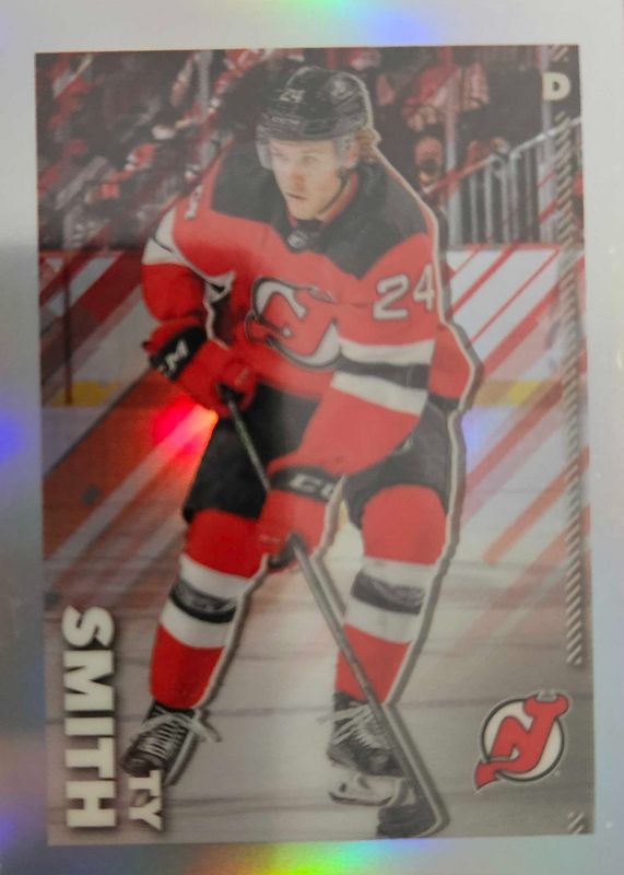 This card is 1 of 6 Ty Smith's card variations in the 2022 Topps Chrome NHL Sticker Collection set being tracked by Sports Card Investor, including Base, Gold Refractor /50, Orange Refractor /25, Red Refractor /5, and Superfractor /1.