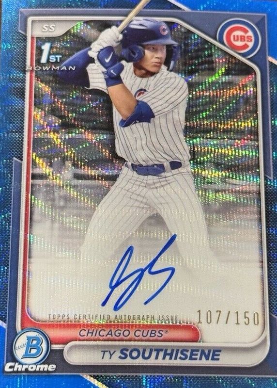 TY SOUTHISENE 2024 BOWMAN CHROME DRAFT 1ST BLUE WAVE AUTO /150 Color Match Cubs