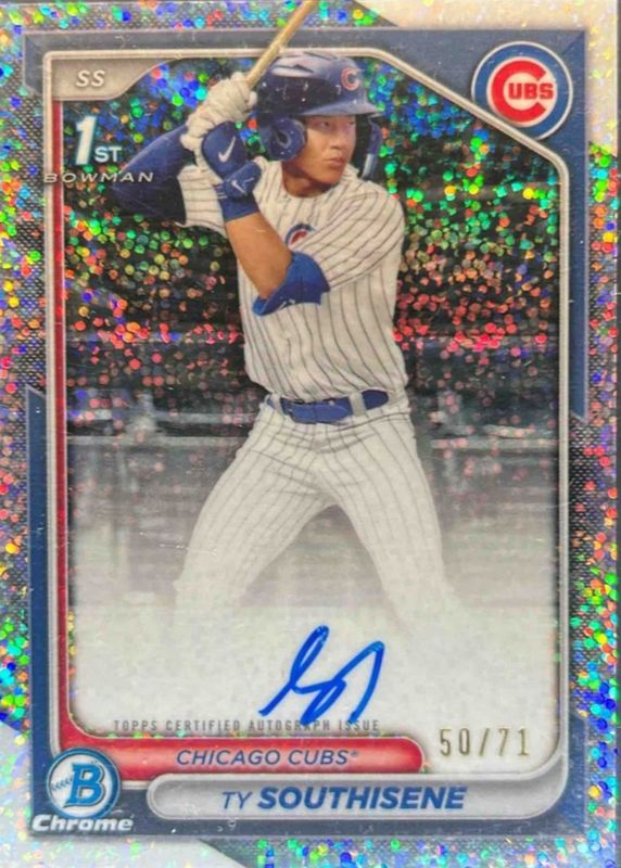 The Ty Southisene 2024 Bowman Draft #CPA-TS Chrome DP Auto - Sparkles Refractor /71 (1st) card in Raw condition has not changed in price in the last 30 days and was last sold for $71.00 .