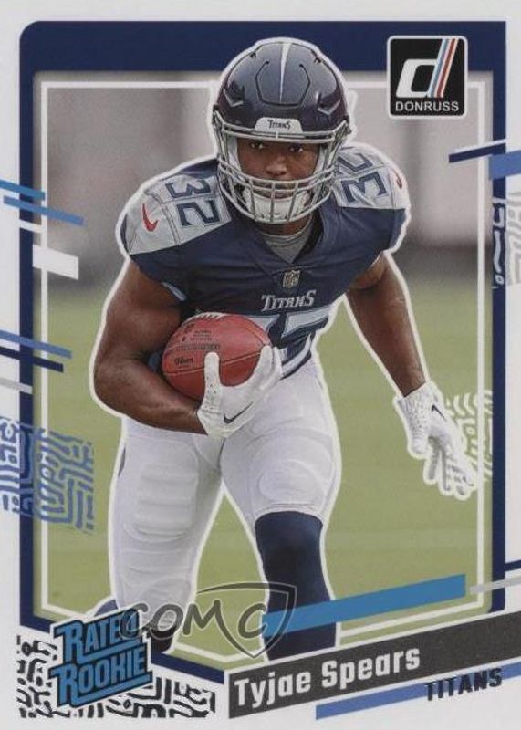 This card is 1 of 37 Tyjae Spears' card variations in the 2023 Donruss set being tracked by Sports Card Investor, including Base, Canvas, Jersey Number (/32), No Name, and Optic Preview - Blue Scope.