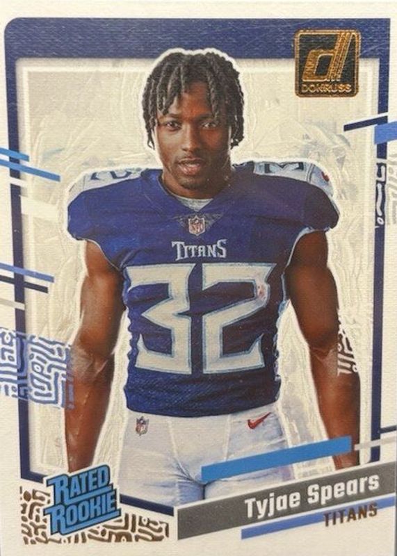 This card is 1 of 37 Tyjae Spears' card variations in the 2023 Donruss set being tracked by Sports Card Investor, including Base, Aqueous Test, Jersey Number (/32), No Name, and Optic Preview - Blue Scope.