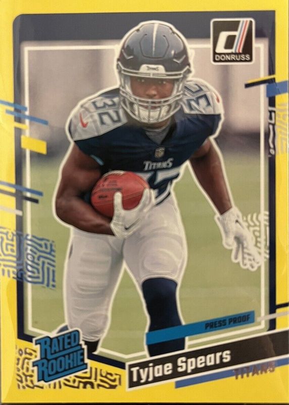 Tyjae Spears (RC) 2023 NFL Panini Donruss Yellow Press Proof Titans Card #396