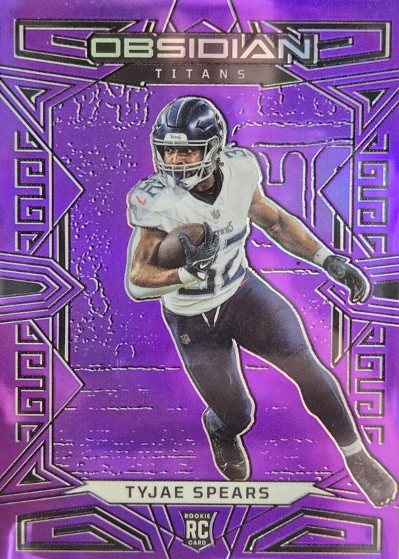 This card is 1 of 24 Tyjae Spears' card variations in the 2023 Obsidian set being tracked by Sports Card Investor, including Base, Asia, Electric Etch Red Flood /90, Electric Etch Purple /75, and Electric Etch Contra /(SSP).