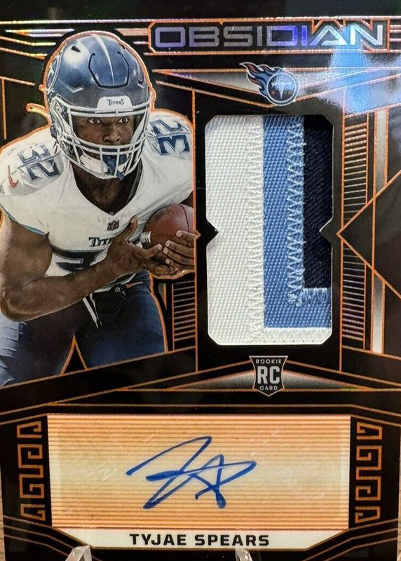 The Tyjae Spears 2023 Obsidian #201 Rookie Jersey Autographs - Electric Etch Orange /49 card in Raw condition has not changed in price in the last 30 days and was last sold for $9.51 .