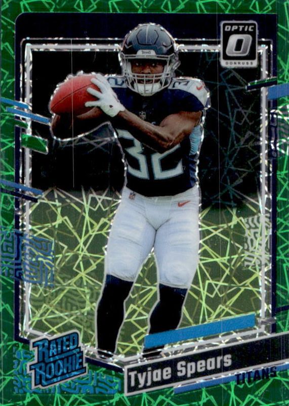 TYJAE SPEARS RC SP 2023 Donruss Optic Green Velocity #297 Rated Rookie Titans