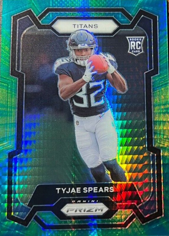 Tyjae Spears 2023 Panini PRIZM Football Green Hyper PRIZM RC #'d /175 No. 396