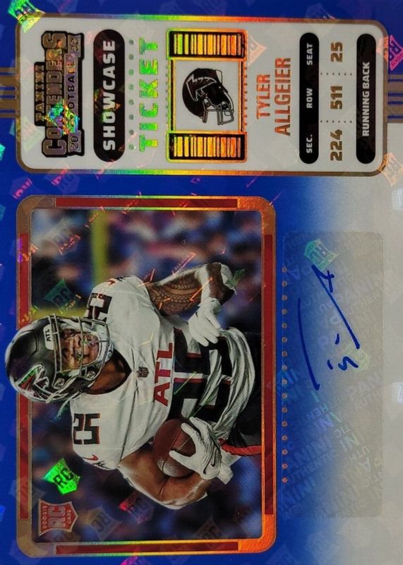 2022 Panini Contenders Tyler Allgeier Rookie Showcase Ticket Auto Blue Variation