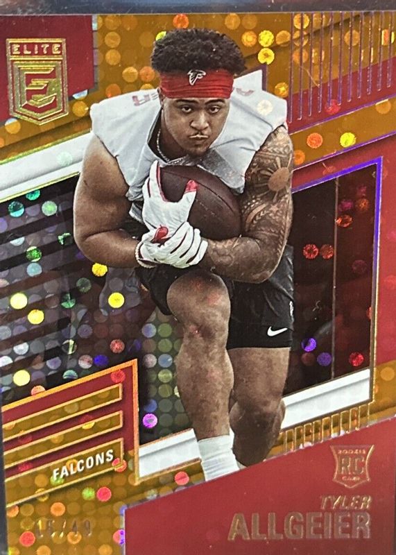 2022 Panini Donruss Elite Tyler Allgeier RC 49/49 Orange Disco Atlanta Falcons