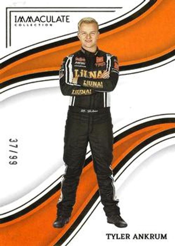 The Tyler Ankrum 2023 Chronicles NASCAR #4 Immaculate /99 card is 1 of 34 Tyler Ankrum's card variations in the 2023 Chronicles NASCAR set being tracked by Sports Card Investor, including #6 Luminance, #6 Luminance Autographs, #AK Obsidian Signatures, #TA Obsidian Signatures, and #6 Luminance - Blue /199.