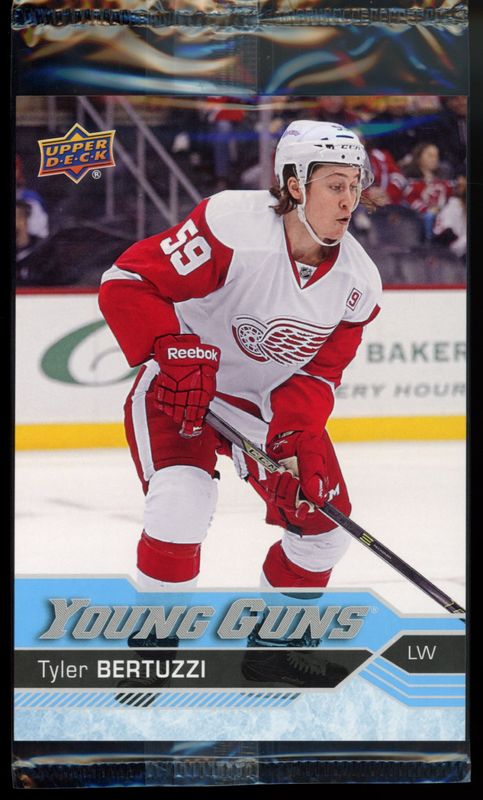 The Tyler Bertuzzi 2016 Upper Deck #471 Jumbo Parallels Rookie card is 1 of 13 Tyler Bertuzzi's card variations in the 2016 Upper Deck set being tracked by Sports Card Investor, including Young Guns Base, Young Guns - Clear Cut, Young Guns - Gold Rainbow Foil, Young Guns - Jumbo, and Young Guns - Silver Foil.