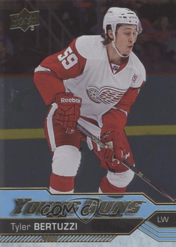 This card is 1 of 13 Tyler Bertuzzi's card variations in the 2016 Upper Deck set being tracked by Sports Card Investor, including Young Guns Base, Young Guns - Clear Cut, Young Guns - Gold Rainbow Foil, Young Guns - Jumbo, and Young Guns - UD Exclusives /100.