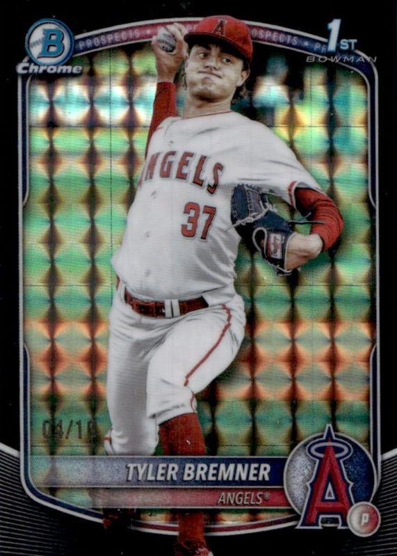 The Tyler Bremner 2025 Bowman Draft #BDC-37 Chrome - Black Geometric Refractor /10 (1st) card in Raw condition has not changed in price in the last 30 days and was last sold for $82.77 .