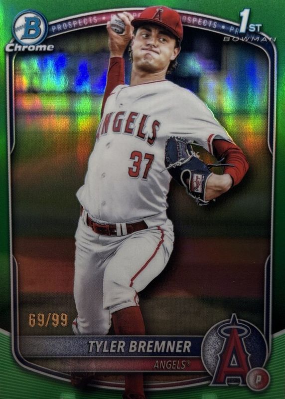 Best Prices Available For Sale of Tyler Bremner 2025 Bowman Draft #BDC-37 Chrome - Green Refractor /99 (1st)