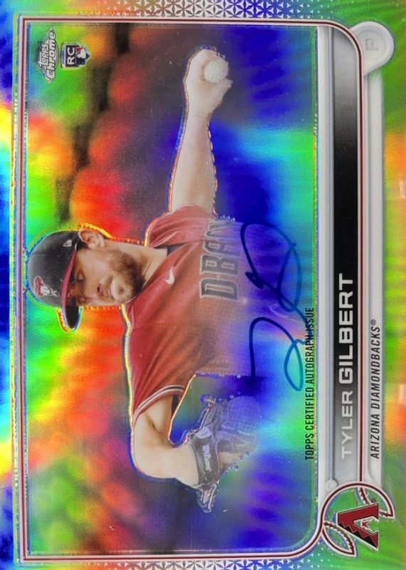 Tyler Gilbert's Baseball cards are available in at least 11 sets. Tyler Gilbert's biggest 7-day price movers are 2022 Topps Chrome #RA-TG Rookie Auto - Refractor /499, 2022 Topps Chrome #RA-TG Rookie Auto - Superfractor /1, and 2022 Topps Chrome #RA-TG Rookie Auto - Blue RayWave Refractor /150.