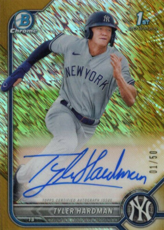 2022 Bowman Chrome Tyler Hardman 1st Bowman Auto Gold Shimmer /50 Yankees