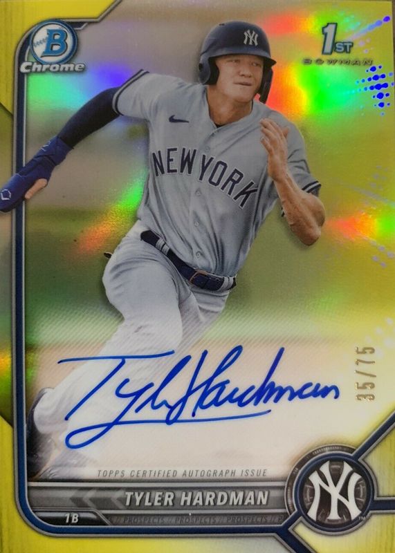 2022 Bowman Chrome Tyler Hardman Yellow Refractor Auto 58/75 1st Rookie Yankees