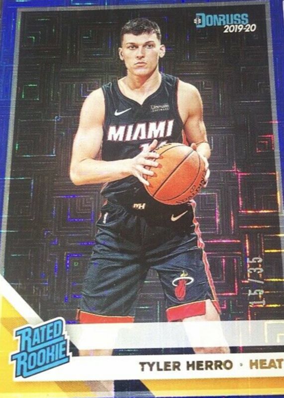 The Tyler Herro 2019 Donruss #212 Infinite Blue /35 Rookie card in Raw condition has not changed in price in the last 30 days and was last sold for $20.51 .