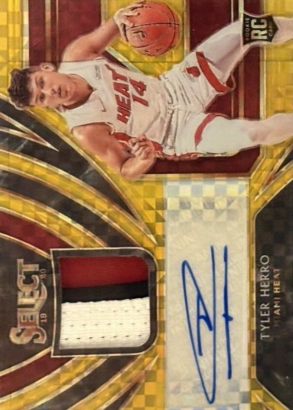 The Tyler Herro 2019 Select #RJA-THR Rookie Jersey Autographs - Gold /10 card in Raw condition has not changed in price in the last 30 days and was last sold for $202.50 .