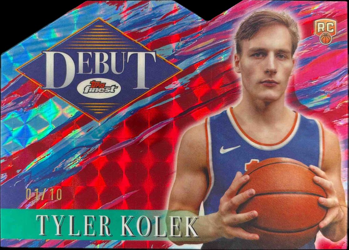 The Tyler Kolek 2024 Topps Finest #D-27 Debut - Red Geometric Refractor /10 Rookie card is 1 of 95 Tyler Kolek's card variations in the 2024 Topps Finest set being tracked by Sports Card Investor, including Arrivals, Arrivals - Geometric Refractor, Arrivals - Refractor, Arrivals - X-Fractor, and Base Uncommon.