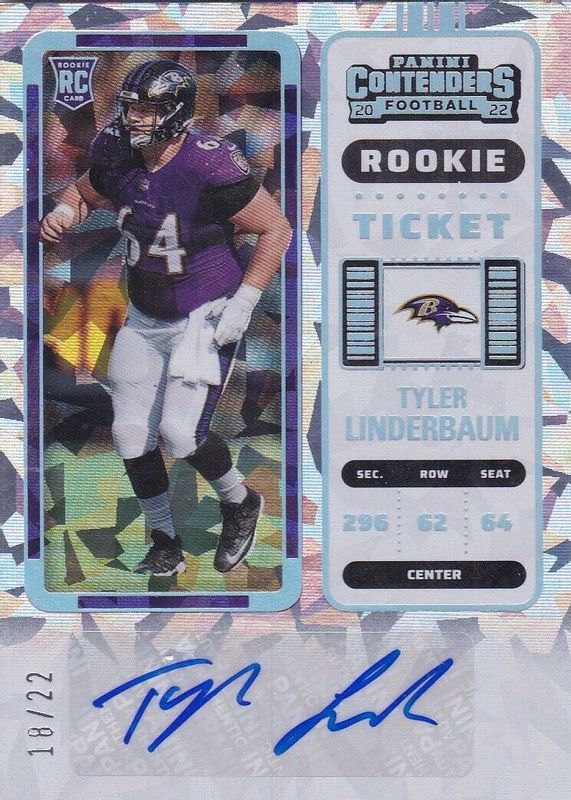 2022 Contenders Rookie Cracked Ice Ticket SP /22 #155 Tyler Linderbaum Auto CS5
