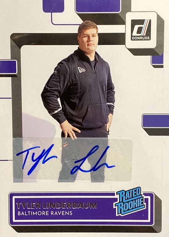 This card is 1 of 3 Tyler Linderbaum's card variations in the 2022 Donruss set being tracked by Sports Card Investor, including Rated Rookie Autographs - Blue, and Rated Rookie Autographs - Orange.