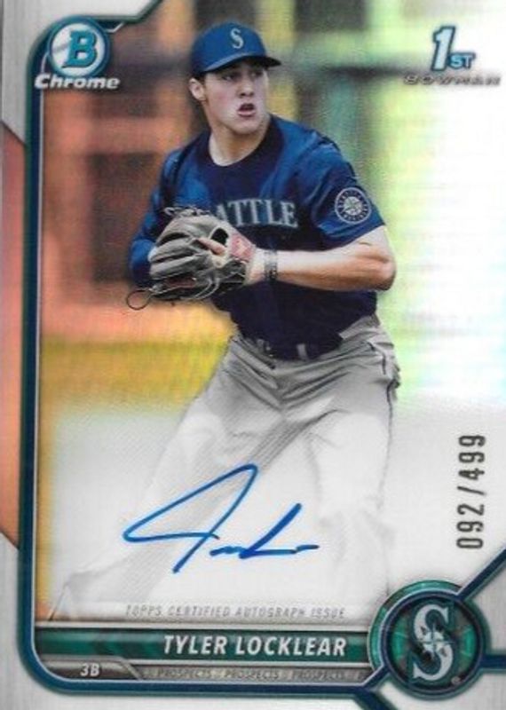2022 Bowman Draft Tyler Locklear Chrome Auto Refractor 1st #/499 Mariners