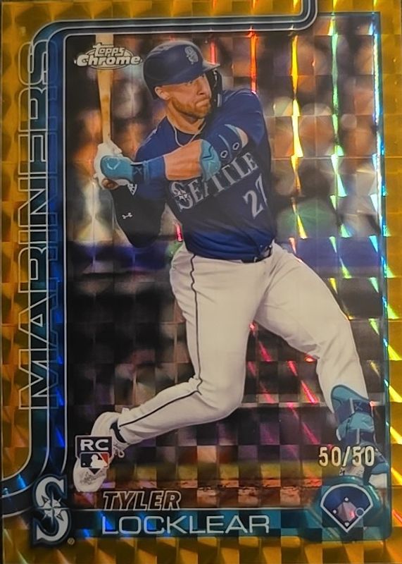 The Tyler Locklear 2025 Topps Chrome #41 Gold Geometric Refractor /50 Rookie card in Raw condition has not changed in price in the last 30 days and was last sold for $4.25 .