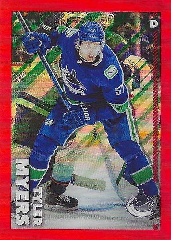 The Tyler Myers 2022 Topps Chrome NHL Sticker Collection #490 Red Refractor /5 card in Raw condition has not changed in price in the last 30 days and was last sold for $7.89 .