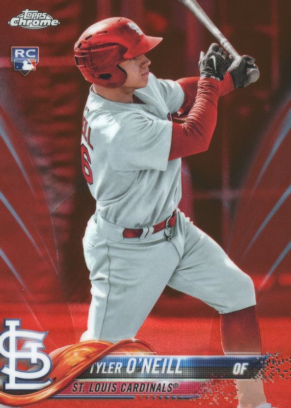 Tyler O'Neill's Baseball cards are available in at least 20 sets. Tyler O'Neill's biggest 7-day price movers are 2018 Topps Chrome #35 Red Refractor /5, 2016 Bowman #CPA-TO Chrome Prospect Auto - Green Refractor /99 (1st), and 2018 Topps Chrome #35 Purple Refractor /299.
