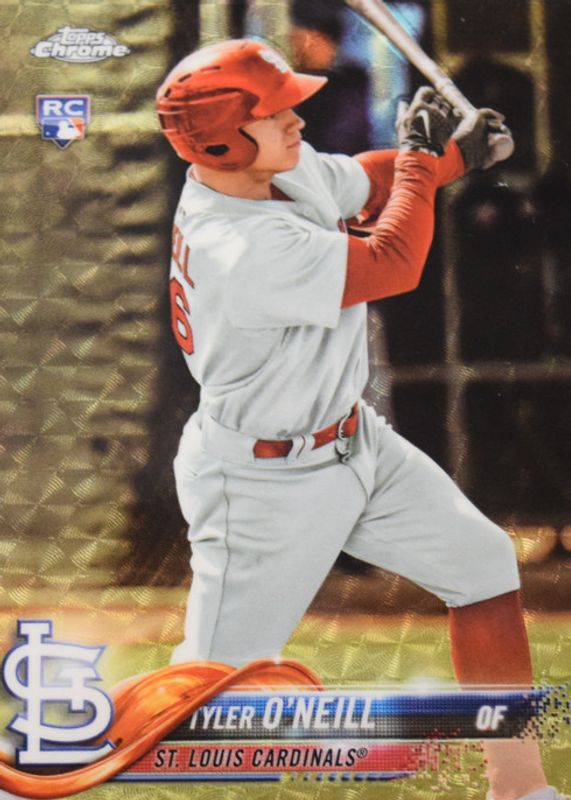 This card is 1 of 18 Tyler O'Neill's card variations in the 2018 Topps Chrome set being tracked by Sports Card Investor, including Base, Negative Refractor, Pink Refractor, Prism Refractor, and Refractor.