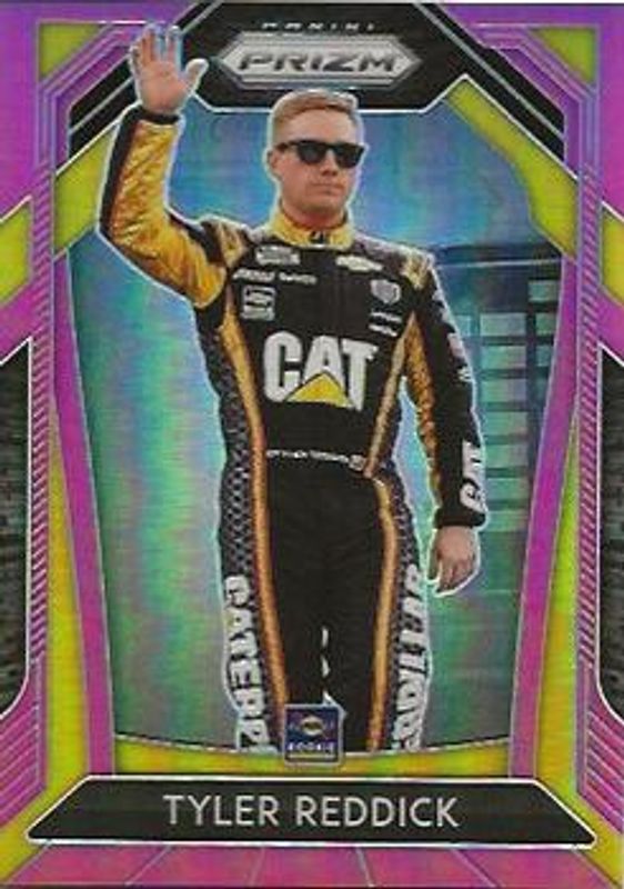 The Tyler Reddick 2020 Prizm NASCAR #26 Pink /50 card is 1 of 47 Tyler Reddick's card variations in the 2020 Prizm NASCAR set being tracked by Sports Card Investor, including Base, Blue, Blue & Carolina Blue Hyper, Green & Yellow Hyper, and Red.