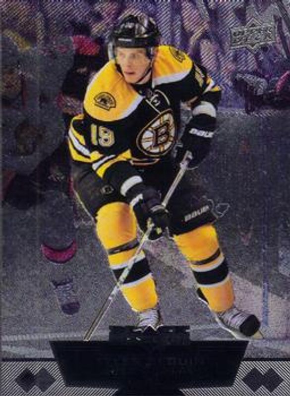 The Tyler Seguin 2012 Upper Deck Black Diamond #4 Base card is 1 of 6 Tyler Seguin's card variations in the 2012 Upper Deck Black Diamond set being tracked by Sports Card Investor, including Ruby /100, Emerald /10, Sapphire /1, Double Diamond Jerseys, and Dual Jerseys Autographs /5.