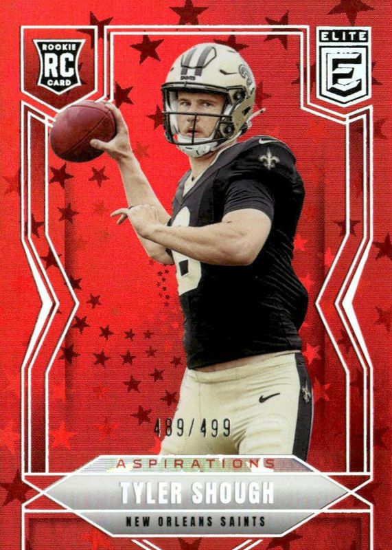 The Tyler Shough 2025 Elite #178 Aspirations Stars /499 Rookie card in Raw condition has not changed in price in the last 30 days and was last sold for $5.50 .