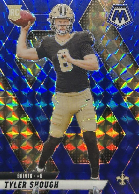 The Tyler Shough 2025 Mosaic #312 Blue /99 Rookie card in Raw condition has moved up $42.95 (+534%) in the last 30 days and was last sold for $51.00 .