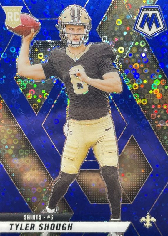 The Tyler Shough 2025 Mosaic #312 No Huddle Blue /99 Rookie card in Raw condition has moved up $2.50 (+11.1%) in the last 30 days and was last sold for $25.00 .