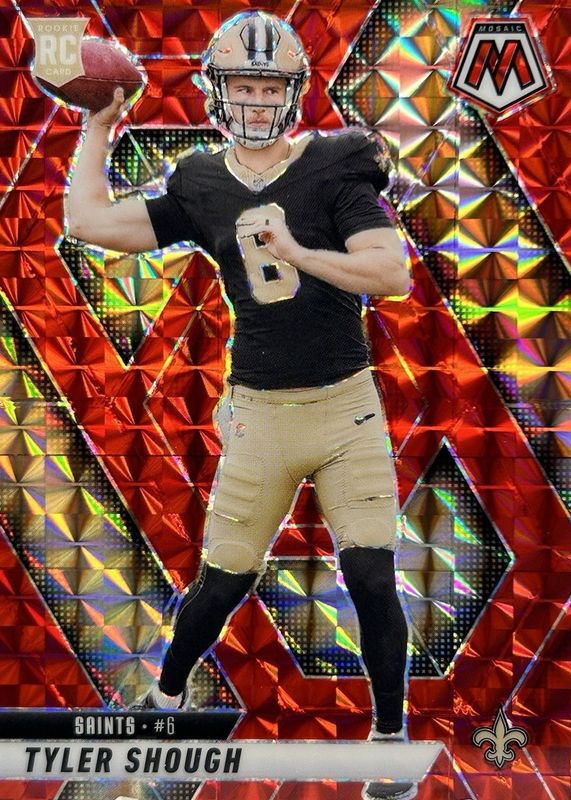 The Tyler Shough 2025 Mosaic #312 Red Rookie card in Raw condition has moved up $6.74 (+300%) in the last 30 days and was last sold for $8.99 .