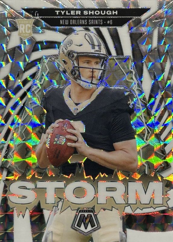 The Tyler Shough 2025 Mosaic #7 Storm - White /25 Rookie card in Raw condition has moved up $12.13 (+33.8%) in the last 30 days and was last sold for $48.00 .