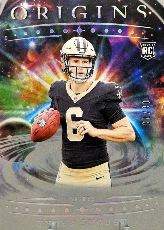 This card is 1 of 46 Tyler Shough's card variations in the 2025 Origins set being tracked by Sports Card Investor, including Base, Holo Red /299, Holo Orange /249, Red /225, and Holo Blue /199.