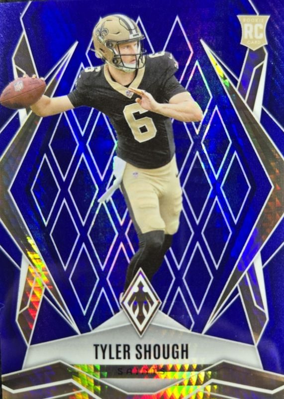 The Tyler Shough 2025 Phoenix #169 Blue Hyper /199 Rookie card in Raw condition has not changed in price in the last 30 days and was last sold for $13.00 .