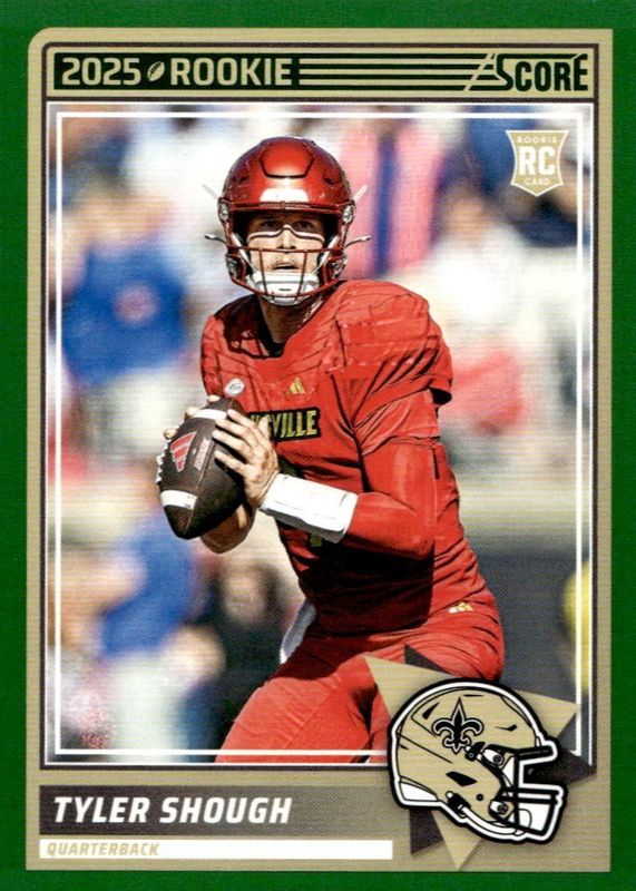 The Tyler Shough 2025 Score #71 Green Rookie card in Raw condition has moved up $0.51 (+51.5%) in the last 30 days and was last sold for $1.50 .