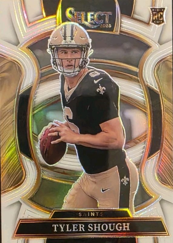 The Tyler Shough 2025 Select #41 Concourse White /35 Rookie card in Raw condition has moved down -$40.00 (-34.8%) in the last 30 days and was last sold for $75.00 .