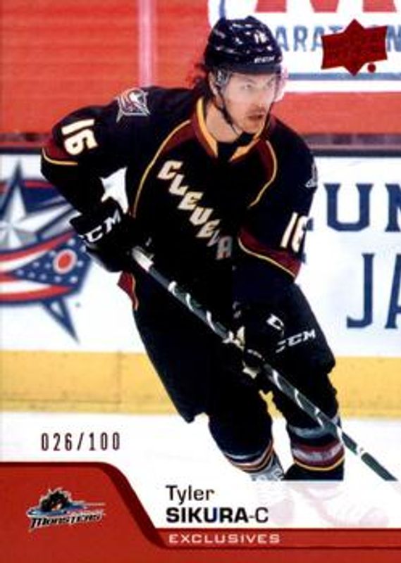 The Tyler Sikura 2020 Upper Deck AHL #89 UD Exclusives /100 card is 1 of 9 Tyler Sikura's card variations in the 2020 Upper Deck AHL set being tracked by Sports Card Investor, including Base, UD High Gloss /10, Autographs, Blue, and Printing Plates Black /1.