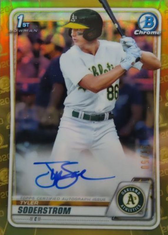 Best Prices Available For Sale of Tyler Soderstrom 2020 Bowman Draft #CDA-TS Chrome DP Auto - Gold Refractor /50 (1st)