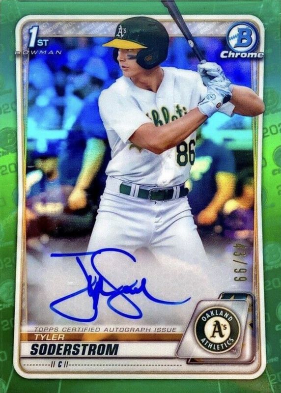 Best Prices Available For Sale of Tyler Soderstrom 2020 Bowman Draft #CDA-TS Chrome DP Auto - Green Refractor /99 (1st)