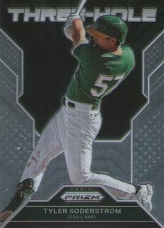 The Tyler Soderstrom 2023 Prizm #TH17 Three-Hole card is 1 of 45 Tyler Soderstrom's card variations in the 2023 Prizm set being tracked by Sports Card Investor, including Base, Blue Ice, Giraffe, Green Ice, and Hyper.